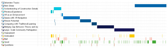 A key aspect of XR’s impact on landscape architecture is its ability to enhance training simulations and context awareness. As highlighted by Lee et al. (2022), XR technology enhances training simulations and visual and audio-based classification, automated hazard detection, and context awareness in head-mounted displays [46]. This advancement is crucial for understanding complex construction processes, enabling learners to visualize and interact with construction scenarios in a safe and controlled environment. As noted in the previous point, Misius (2021) notes that features of XR are particularly beneficial in landscape architecture construction for engaging various stakeholders in the learning process, ensuring that diverse viewpoints and expertise are considered [50].