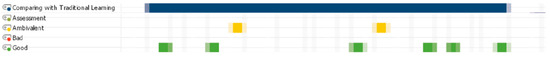 Constructivist-related learning theories, such as situated cognition, activity theory, experiential learning, anchored instruction, and authentic learning, can be effectively utilized in educational technology and distance education, including XR applications [54]. These theories support learning as the active, contextualized process of constructing knowledge, rather than acquiring it. XR’s capability to simulate real-world environments and scenarios aligns well with these theories, making it a powerful tool in constructivist learning approaches. Situated cognition theory emphasizes the importance of context in learning [55]. This theory posits that knowledge is best acquired when embedded in authentic, meaningful, and relevant contexts. This theory suggests that effective XR experiences should present information in context-rich environments that promote deep understanding. Understanding and applying constructivist principles in the context of XR in higher education is crucial. It aligns with the interactive and immersive nature of XR and supports students’ active engagement for a more meaningful learning experience.