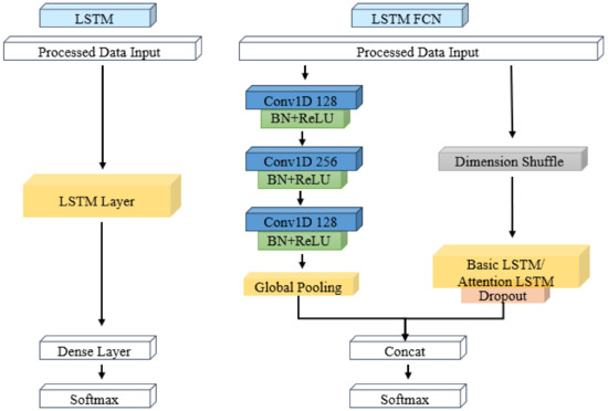 - LSTM-FCN-Pytorch. Available online: https://github.com/roytalman/LSTM-FCN-Pytorch (accessed on 28 January 2024).