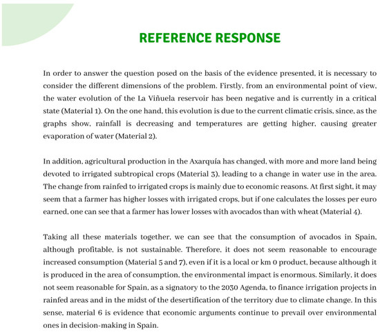 The following supporting information can be downloaded at: https://www.mdpi.com/article/10.3390/educsci14060560/s1, Figure S1: Evolution of water levels in the La Viñuela reservoir; Figure S2: Evolution of annual average rainfall and temperature; Figure S3: Evolution of the area and production of subtropical crops in the province of Málaga; Table S1: Comparison of rainfed and irrigated crop yields; Figure S4: Advertisements; Figure S5: Extract from the call for applications for aid to improve irrigated crops in Andalucia; Figure S6: Evolution of the consumption of avocados in Spain.