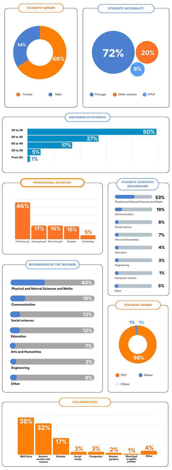 The students who have been attending the master’s degree program have diversified their areas of training. For example, in 2021/22, candidates had backgrounds in biology, teaching physics and chemistry, forest engineering, nutrition, psychology, law, pharmacy, sociology, literature, design, journalism, and history. Most of them have jobs in science dissemination areas, such as science centers and science museums. Still, there are also some teachers in primary and secondary education and higher education, which is an indicator of rich interaction and learning.