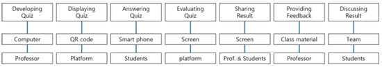 Consequently, an efficacious pedagogical approach to facilitate active communication, stimulate participation, and infuse classes with a sense of enjoyment, while concomitantly reducing the instructor’s workload, is the instant response system (IRS). Previous studies on the IRS or classroom response system (CRS) have primarily assessed satisfaction, learning outcomes, motivation, and participation. These studies have frequently demonstrated favorable perceptions of class quality and academic effectiveness [13,14,15]. Comparisons with traditional classes frequently indicate superior academic performance and knowledge retention among IRS participants [16,17], although some studies report no significant difference [18]. Nevertheless, the IRS facilitates learner-centered approaches and the efficient use of lecture time, fostering self-reflection and collaboration [19,20,21]. The advent of modern technology has made the IRS more accessible through mobile devices, rendering it an effective and convenient teaching tool. It enhances interaction, participation, satisfaction, and academic achievement [22,23].