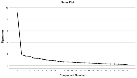 Scree plot of the principal component factor analysis on the reduced version of 27 items.