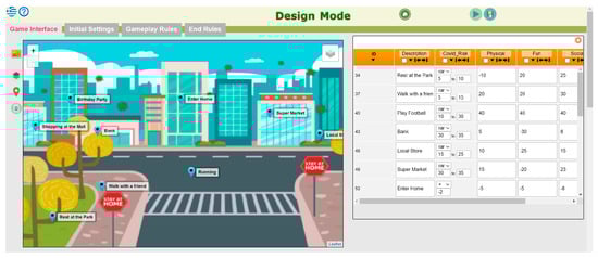 Figure 2). Finally, she can switch to a Blockly programming feature to write programs to set the initial values, set the ‘red lines’, put up warning texts or sounds when a certain value gets close to a red line, and anything else regarding the game rules (