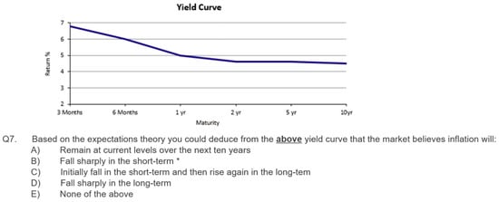 In the first example, a multiple-choice exam question from a Finance course is taken as seen in Figure 1. Initially, a baseline was established to determine if GPT-4V could answer the question correctly when presented with multiple-choice responses. The correct answer is “B”, and GPT-4V correctly answered this, with the response: “The most accurate interpretation based on the shape of the yield curve would be option B, indicating that the market expects inflation to fall sharply in the short-term”. With this established, the next aim was to demonstrate the efficacy of the proposed approach. Table 3 shows the Steps (1 to 4) that were carried out in a new and separate session. GPT-4V was first asked to answer the exam question without providing multiple-choice answers to test its ability to fully combine visual and conceptual reasoning, to which the response given was incorrect (Step 1). Subsequently, GPT-4V was asked to self-reflect and describe the relevant concepts (Step 2) and to self-reflect on its perception of important visual cues (Step 3) in the image. Both exercises produced sufficiently correct reflective responses, upon which, the exam question was again posed (Step 4) with GPT-4V being invited to revise its initial response based on its subsequent reflective responses. The culmination of these exercises produced the correct final answer.