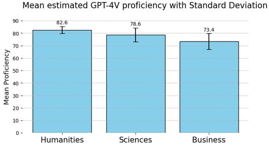 Mean GPT-4V estimated proficiency scores across each discipline.