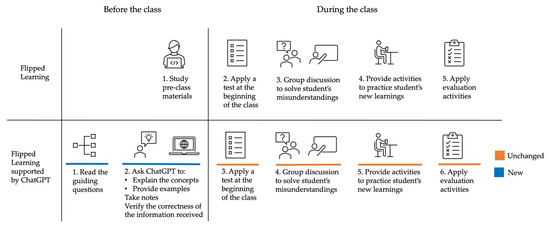 As mentioned before, this study analyzes the use of ChatGPT to support the flipped learning methodology. In this section, both methodologies are described, the traditional one and the one supported by ChatGPT.