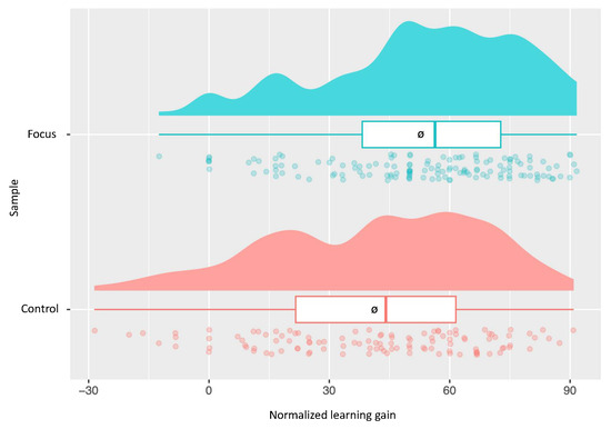 - Results: Presentation of the statistical analysis of the normalized learning gain obtained in the application of pre-tests and post-tests for control and focus groups.