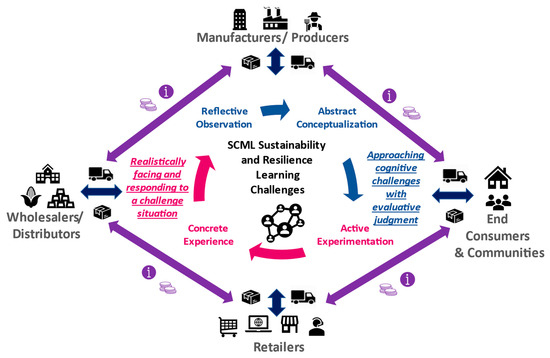 The SLSL is structured to facilitate learning experiences addressing contemporary SCML issues in large urban areas, specifically focusing on their implications for sustainability. These experiences embrace a multi-stakeholder systemic perspective, encompassing environmental, social, and economic dimensions [61,62]. The primary objective of the SLSL is to cultivate students’ development of SCML disciplinary knowledge and sustainability-related competencies in related modules through active engagement in real-world activities. Such activities serve to augment students’ motivation, involvement, and the relevance of their learning experiences. The learning outcomes align with the student outcomes (A–K) specified by the Accreditation Board for Engineering and Technology (ABET) accreditation body, with a particular emphasis on industrial engineering programmes [63]. Consequently, the SLSL’s support is integrated into modules covering areas such as supply chain management, logistics, operations management, and systems thinking.