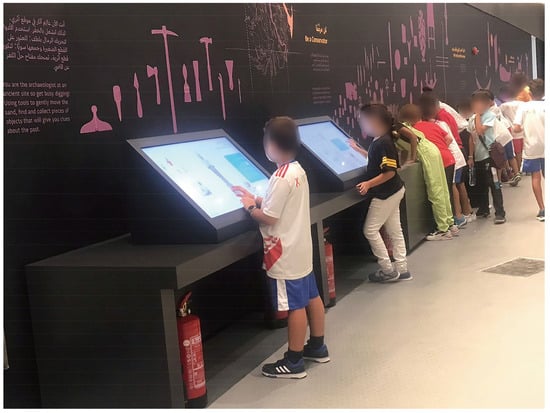 In the 20th century museum, the new focus on a visitor-centered approach sent museums into new territories of education where museums became powerful educators with the potential to significantly impact the human experience [19,20]. The standard methods of traditional education that rely on teaching and transmitting information to passive receivers, which is similar to the institutionalized formal education of schools and universities, have expanded to a more interactive experience model that offers visitors a high degree of experiential participation, flexibility, interaction, and social engagement [21,22,23,24,25]. Much of the published literature in the museum discourse highlights, therefore, the museums’ environments as places of learning, lifelong learning, and experiences that combine physical, social, and personal contexts in the learning processes [23,26].