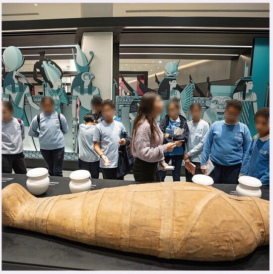 - The Egyptian Museum. 2024. Children’s Museum, History and Collection. Available online: https://egyptianmuseumcairo.eg/childrens-museum/ (accessed on 22 April 2024).