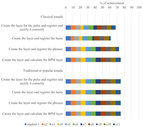 The product of the second unit corresponded to the creation of tempo maps based on the measurements of the agogic—in a corpus of traditional and popular tonadas—from a measurement protocol. The learning results of this activity, which was individual, are presented in Figure 5.