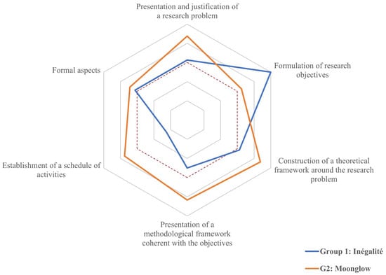 As a first activity, each group had to present a preliminary research project. Figure 7 shows the results of this evaluation.