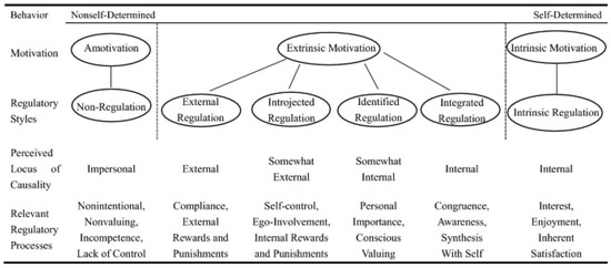 - Ryan, R.M.; Deci, E.L. Intrinsic and extrinsic motivation from a self-determination theory perspective: Definitions, theory, practices, and future directions. Contemp. Educ. Psychol. 2020, 61, 101860. [Google Scholar] [CrossRef]
