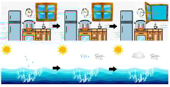 Although young children can understand phenomena such as boiling [], most of them could face difficulties with other notions such as evaporation []. Tytler [] studied the mental representations of young children, aged 6 to 7 years old, regarding evaporation and condensation, while Cruz-Guzman et al. [] examined 2- to 4-year-old children’s mental representations about the change of matter in daily material.