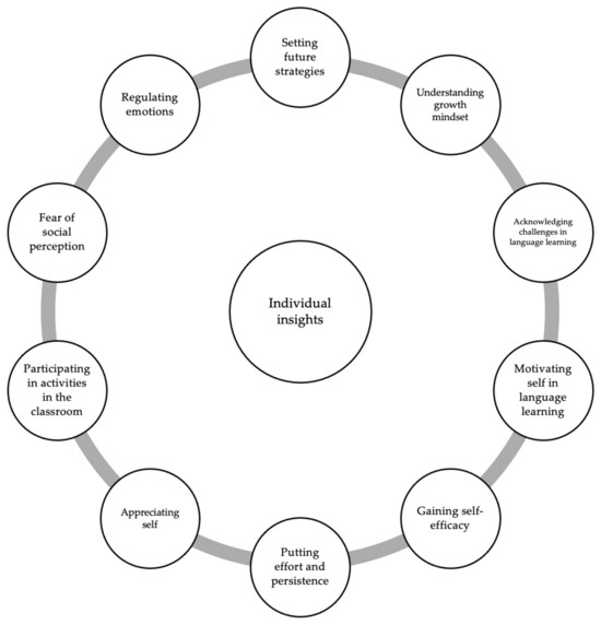 Ten themes elicited from individual interviews revealed a multifaceted view of how participants processed and incorporated a growth mindset into their language learning experiences (see Figure 1).