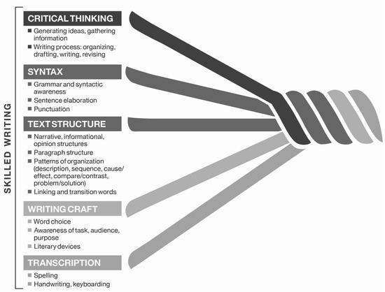 - Sedita, J. The Writing Rope; Brookes Publishing: Baltimore, MD, USA, 2023; Available online: https://brookespublishing.com/wp-content/uploads/2022/10/Sedita-Excerpt.pdf (accessed on 7 June 2023).