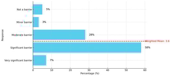 Figure 2 shows that more than half of the participants perceive cultural expectations as substantial barriers (58%) to Emirati women’s inclusion in leadership positions in their workplaces, while 28% report moderate barriers. With a weighted mean score of 3.60, this result highlights a prevalent view that cultural expectations pose a considerable challenge for Emirati women, suggesting a need for re-orientation and a warm reception to policies promoting women’s inclusion in leadership roles. To achieve this, it is essential to consider the participants’ views on the hindering and challenging factors in their pursuit of attaining and sustaining leadership positions in the study context.