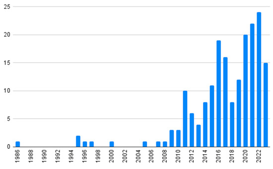 Evolution of published scientific production (1986–2023). Own elaboration.