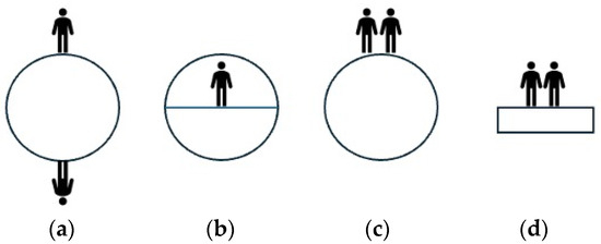 Some examples of children viewing the Earth as an object with up/down gravity; (a) people live on a ball-shaped Earth, (b) people live on flat parts of the Earth, (c) people live on top of the ball-shaped Earth, (d) people live on a flat Earth [26].