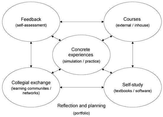 A study suggests multiple learning approaches that integrate courses, self-study, problem-based learning, simulation or practices, and peer learning in communities and networks (see