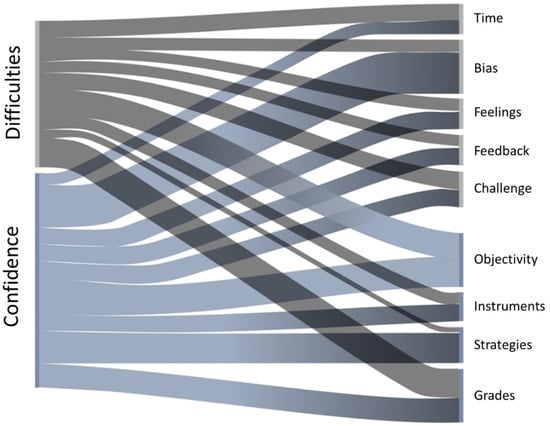 Co-occurrences of the codes confidence and difficulties. Sankey’s diagram, obtained from Atlas, shows the interactions that the codes difficulty and trust have with others.