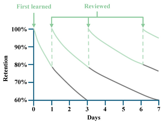 - Murre, J. M., & Dros, J. (2015). Replication and analysis of Ebbinghaus’ forgetting curve. PLoS ONE, 10(7), e0120644. [Google Scholar] [CrossRef] [PubMed]