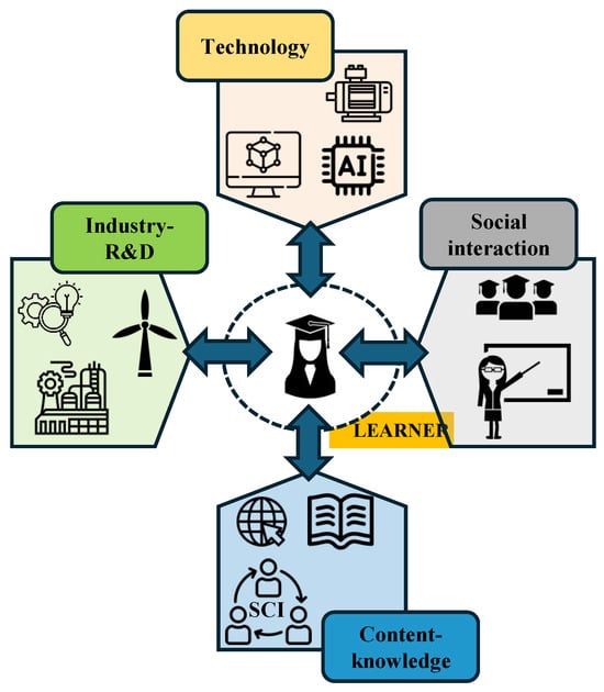 Figure 4 exemplifies the concept of learning from everywhere, showing different sources that can provide valuable inputs for students to create their own knowledge and cognitive/soft skills.
