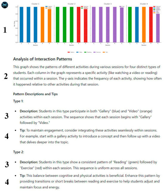 Output of CustomGPT (1—visualization of typical sequences; 2—overall description of sequence analysis visualizations; 3—description of the interaction pattern; 4—tips based on type of interaction).