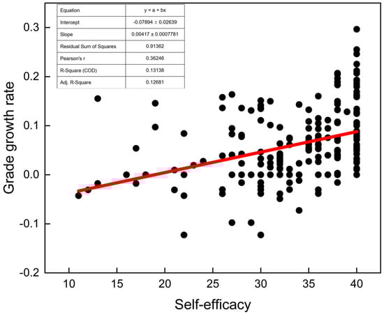Relationship between self-efficacy and achievement growth rate with linear fitting.