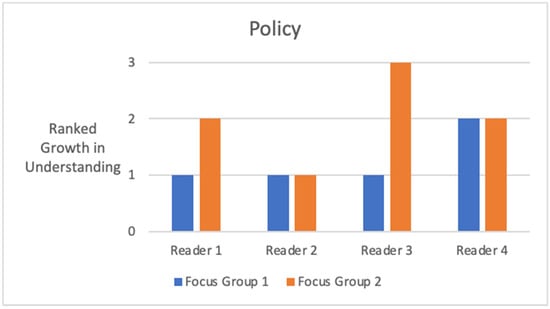 Examining the participants’ development in their understanding of policy, which, in the context of this study referred to the Australian Professional Standards for Teachers (AITSL, 2017), revealed their sense of connection to it as a system that influences the teaching of reading. Within ITE, the results showcased the impact of policy on their teaching identities. The data showed that participants maintained a largely negative attitude towards policy, which is highlighted in red in Table 2. However, as seen in Figure 5, the majority of participants’ understanding shifted from surface level to emerging by the final focus study. Reader 3 showcased significant growth in understanding, contrasted by Reader 4, who remained the same. Analysing this individual growth allowed for a dissection of which systems PSTs are most aware of as they engage with RfP. Looking at Reader 3 in Table 2 showcases the shift in language used and how this reflected their growth in understanding, as they are beginning to question the space for RfP’s implementation in policy.