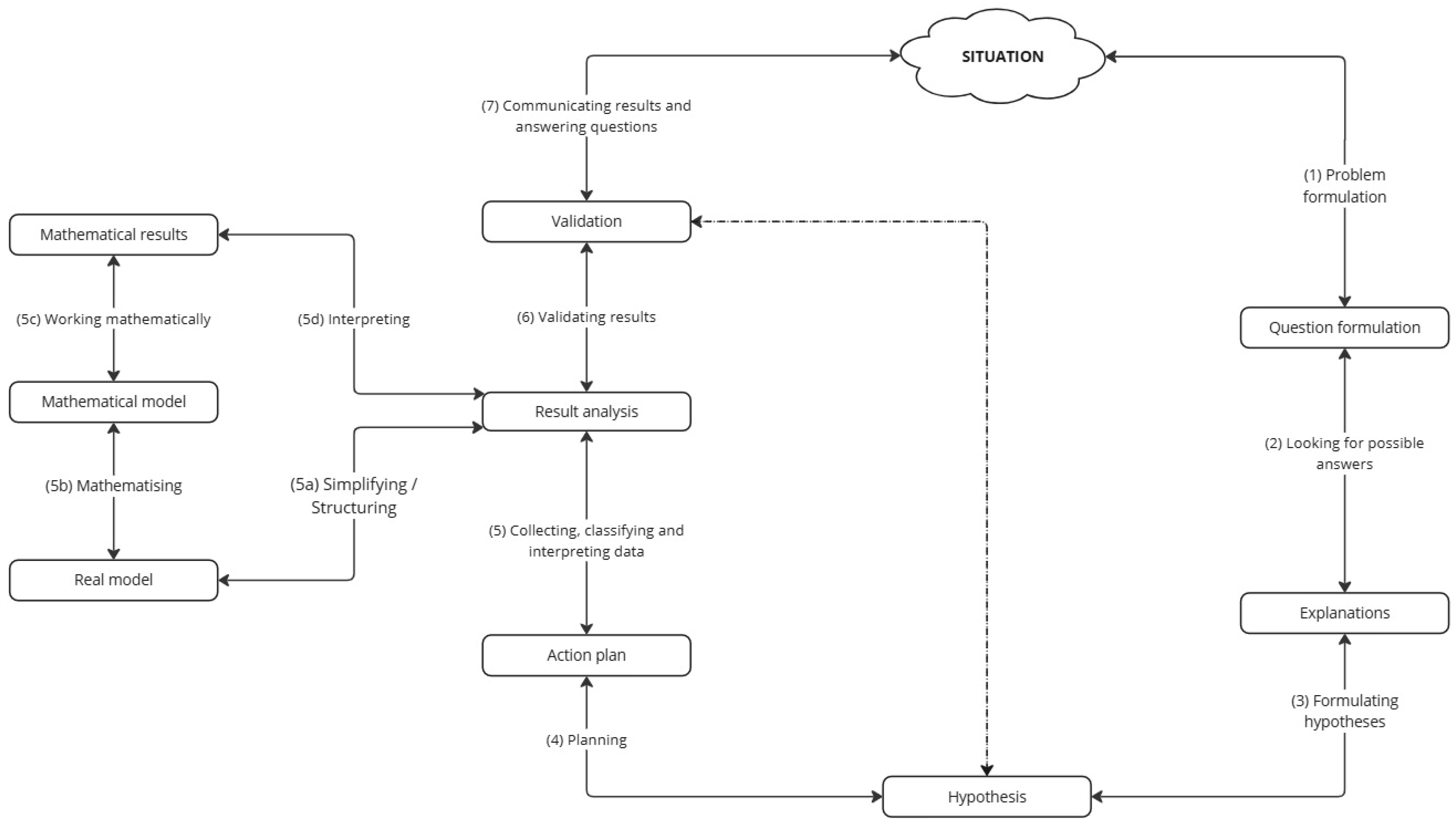 - Sala Sebastià, G., Font, V., & Ledezma, C. (2021). Relaciones entre los procesos de modelización matemática y de indagación desde la perspectiva del aprendizaje de las matemáticas. Quadrante, 30(1), 116–139. [Google Scholar] [CrossRef]