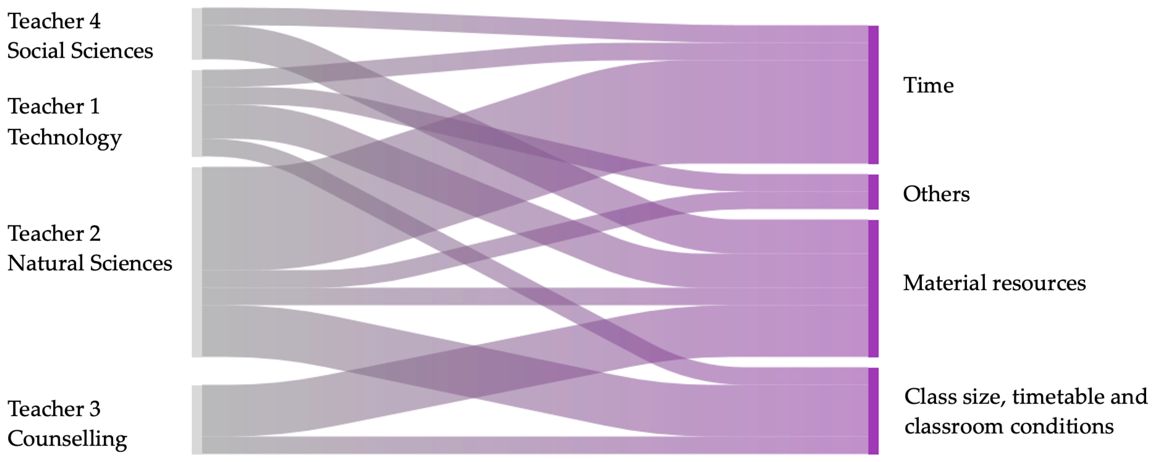 Those of us here [the four teachers] are the ones who have developed the projects together, and therefore all four of us know what we have to do, how we have to do it, when we have to do it… In this case, the person who developed the project was researcher 1, and things were explained to us, and we had a lot of information, and we were all more or less able to look at them [the documents including the development and materials for the LS]. However, in the end, we are not really part of it, are we? We are not the co-creators of all this, and therefore it is no longer just a matter of “ask researcher 1 because I don’t know much about maths,” but rather that I might have to say “draw a graph,” and at that moment they catch me off guard, and I don’t know if it’s a graph or GeoGebra or what, right? That’s what we’ve been talking about: organisation, setting timing, making everything clearer… This will help the students understand it better too. It’s about time and organisation.