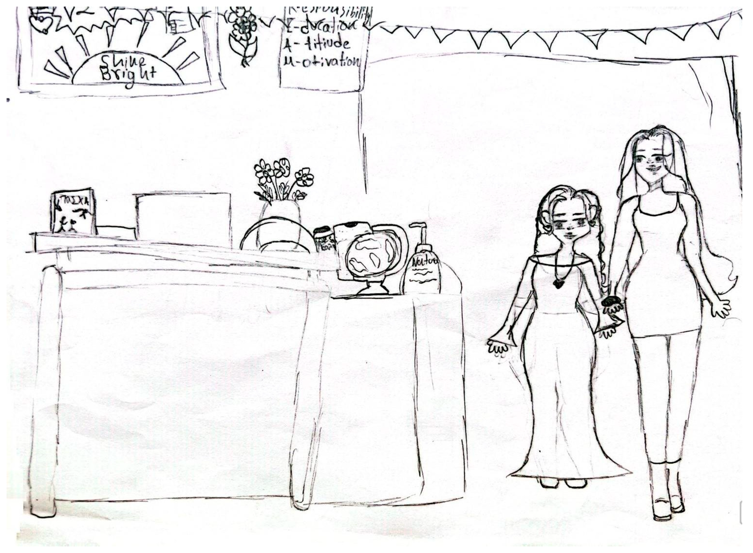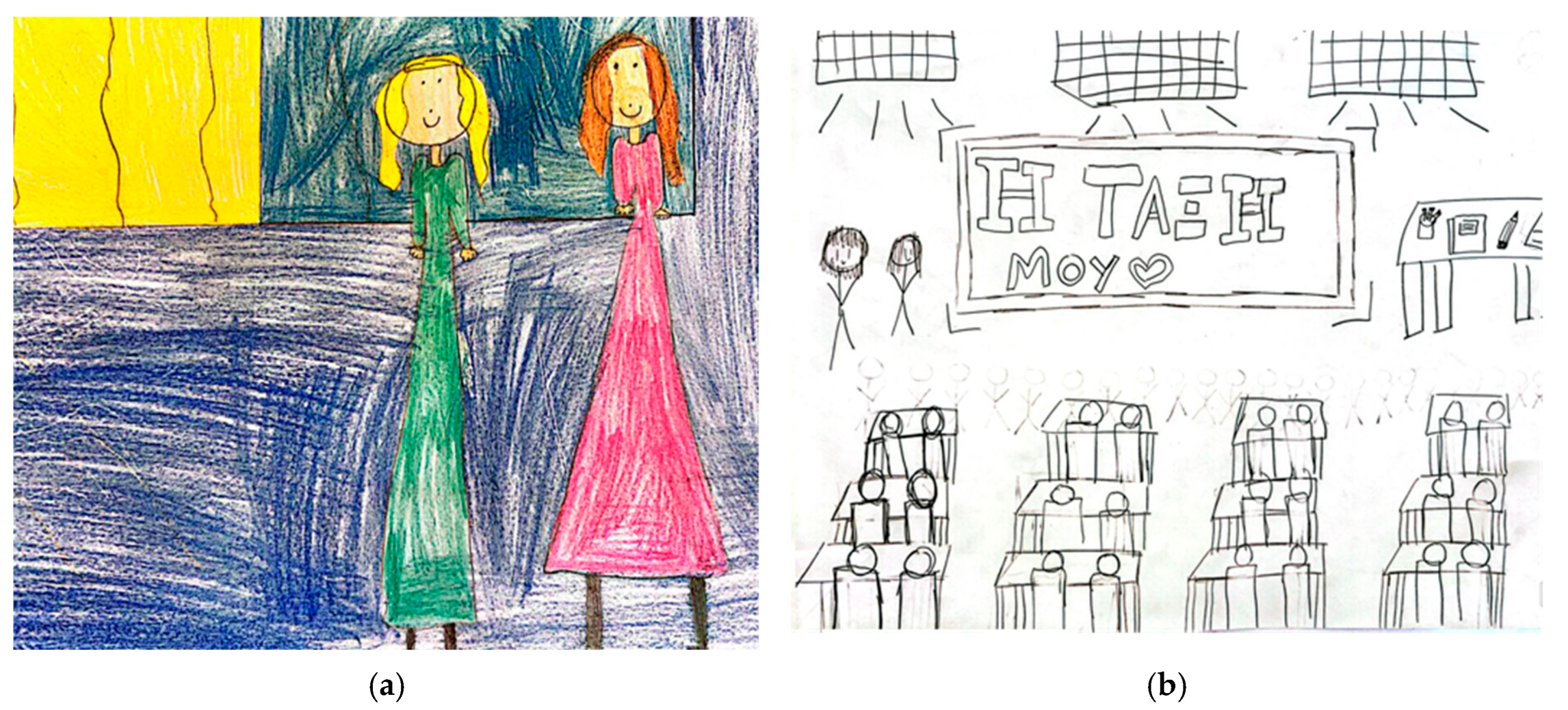 Figure 4a,b depict drawings which are representative of the physical appearance of the teachers.