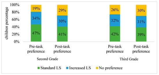 After completing the RC task, the distribution of preferences became more balanced, yet the standard LS condition continued to be favored to a greater extent (41% compared to 30% in the second grade, and 39% compared to 31% in the third grade). Figure 4 presents the proportions of preferences among participants in the second and third grades.