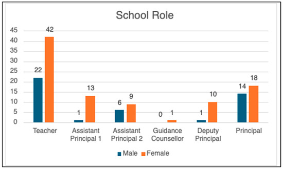 School role by gender. N.B. A participant can hold two positions, such as Assistant Principal and Teacher.