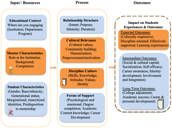 An updated model for mentoring college students in engineering. The components in orange were incorporated due to the importance of these elements in achieving a successful and positive mentoring relationship.