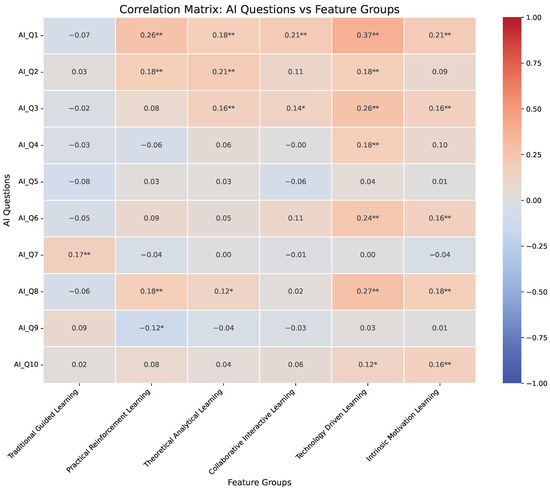 This study defines learning tendencies based on six theories, as shown in Figure 1, with the questionnaire carefully designed and named to better reflect the specific learning characteristics of students. While the original six theories cover a range of learning behaviors, the newly defined learning tendencies—such as “Traditional Instructional” and “Technology-Driven”—more accurately capture students’ preferences in these fields, refining the research focus and expanding its scope. This approach also helps translate the research into actionable teaching strategies.