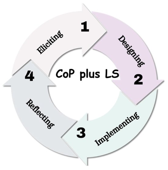 The study was approved by the Ethical Committee of Mahasarakham University and was conducted in strict accordance with ethical guidelines. All participants were provided with detailed information about the study and gave their informed consent. Participation was voluntary, and confidentiality and anonymity were ensured. Participants could withdraw at any time without any negative consequences. The researchers explained the learning process, which followed the CoP plus LS approach, guided by the four-stage model proposed by (): Eliciting, Designing, Implementing, and Reflecting (see Figure 1).