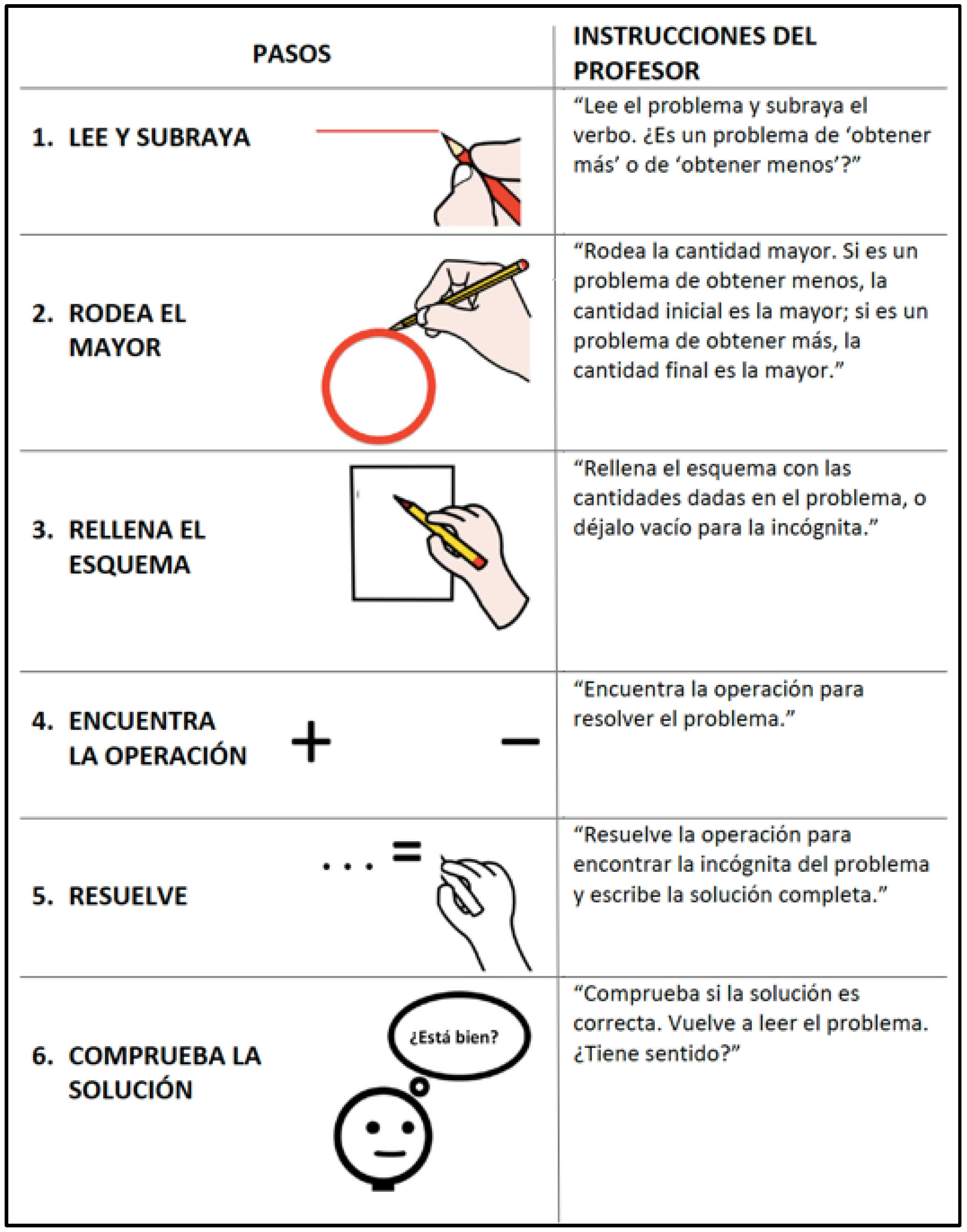 2018), included explicit instruction on using a guiding-questions sheet that incorporated visual representations—pictograms—for each step (