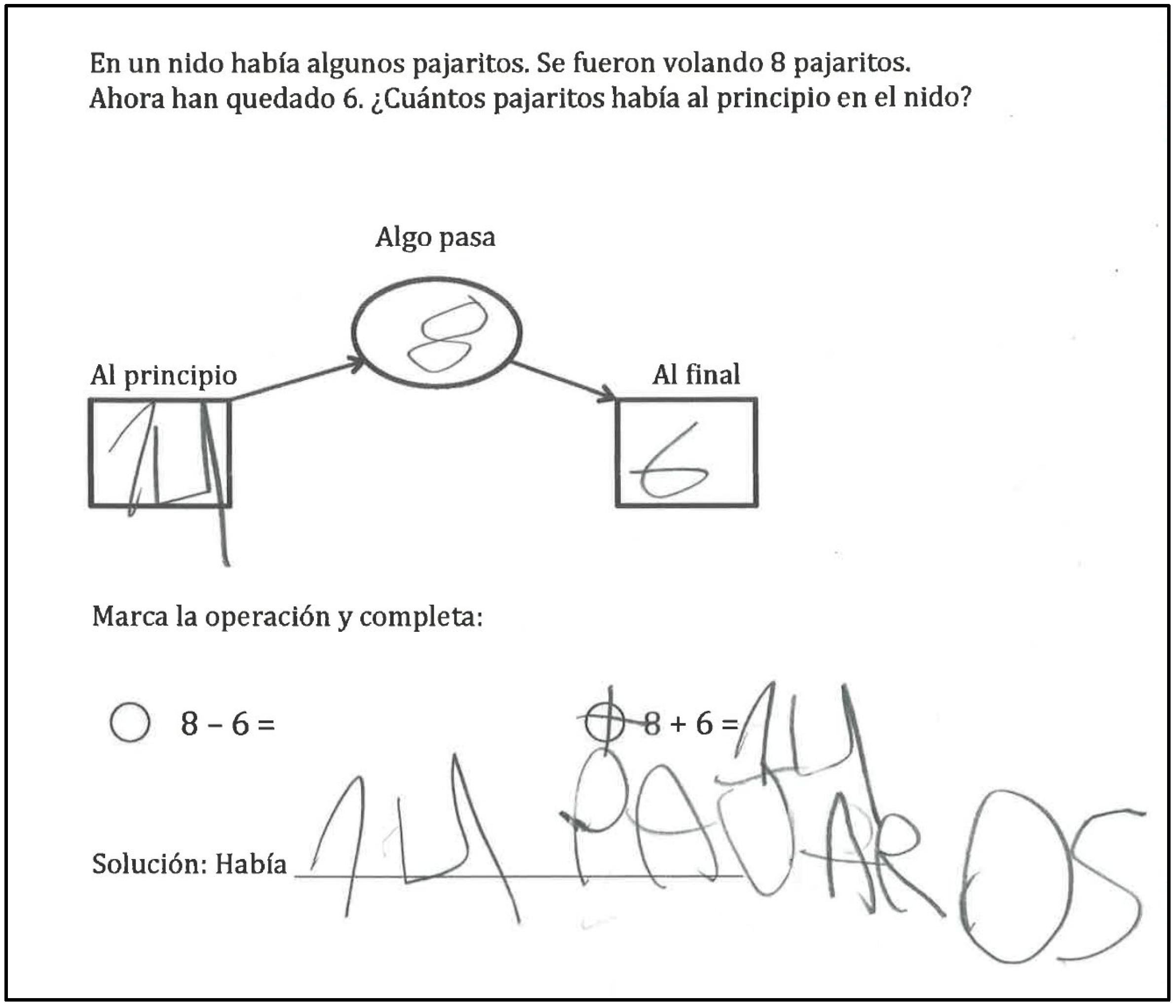 Ginsburg et al., 2007), corresponding to a mathematical age of 7 years 8 months. His subtest scores were as follows: 96% in number skills, 78% in number facts, 71% in concepts, and 50% in number comparison and calculation skills. According to the most recent assessment by the center’s support team, his reading ability is comparable to that of an 8- to 9-year-old, which allows him to read and understand problem statements, although he has trouble understanding certain vocabulary. Prior to the intervention, Peter had limited experience with additive word problems involving addition and subtraction. In some cases, he was able to solve them—often relying on memorized number facts—but in an unstable pattern and only in consistent DDU change problems.