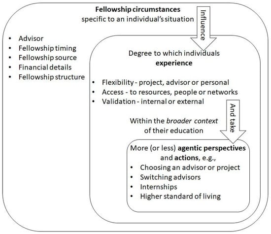 Relationships between coding levels of fellowship circumstances, doctoral student experiences, and agentic perspectives and actions.