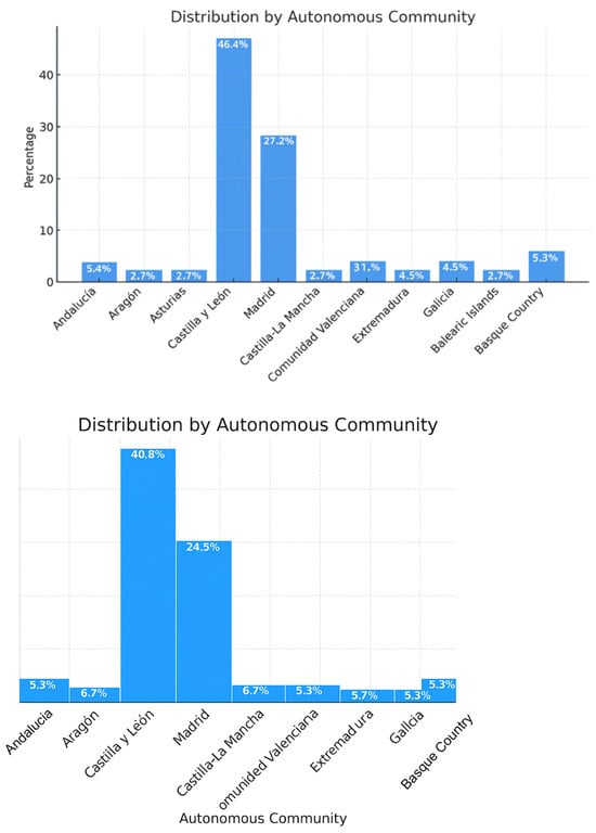 As illustrated in Figure 3, most of the responses come from Castilla y León (46.43%), followed by the Community of Madrid (27.23%). The remaining communities are represented in minority proportions, which shows a significant territorial concentration in the centre-north of the country.