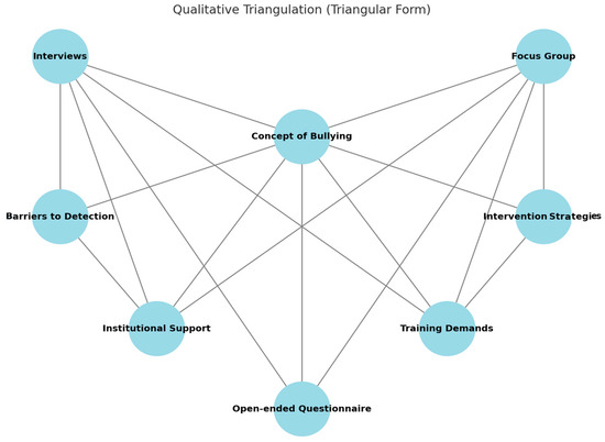 The qualitative analysis was based on the integration of three sources of information: semi-structured interviews with teachers and closed-ended questionnaires, which made it possible to establish a methodological triangulation as shown in Figure 8 that reinforces the validity of the findings.