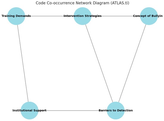 This code show in Figure 9 is connected to barriers, institutional support and training demands, indicating that the way teachers intervene is closely conditioned by the obstacles they perceive and the type of support and training they receive. This centrality confirms their defining role in the teachers’ narrative. The narratives show that an ambiguous understanding of bullying leads to limitations in its early detection. This relationship suggests that conceptual gaps directly affect teachers’ observation skills.