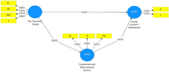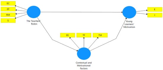 In this study, we proposed and tested a model. It revealed that the roles of teachers significantly influenced their pupils’ motivation to learn English, although the effect was weak (0.281). However, they had a strong and direct impact on contextual and motivational factors (0.839) concerning the English language classroom, whereas contextual and motivational factors had a strong and significant influence on young learners’ motivation (0.614). They mediated the relationship between teachers’ roles and children’s motivation (0.515). These findings document that teachers’ impact on students’ motivation is significant, and it is mediated by contextual and motivational factors. Although the direct effect is not strong, teachers play a vital indirect role by shaping the motivational environment that supports children’s desire to learn.