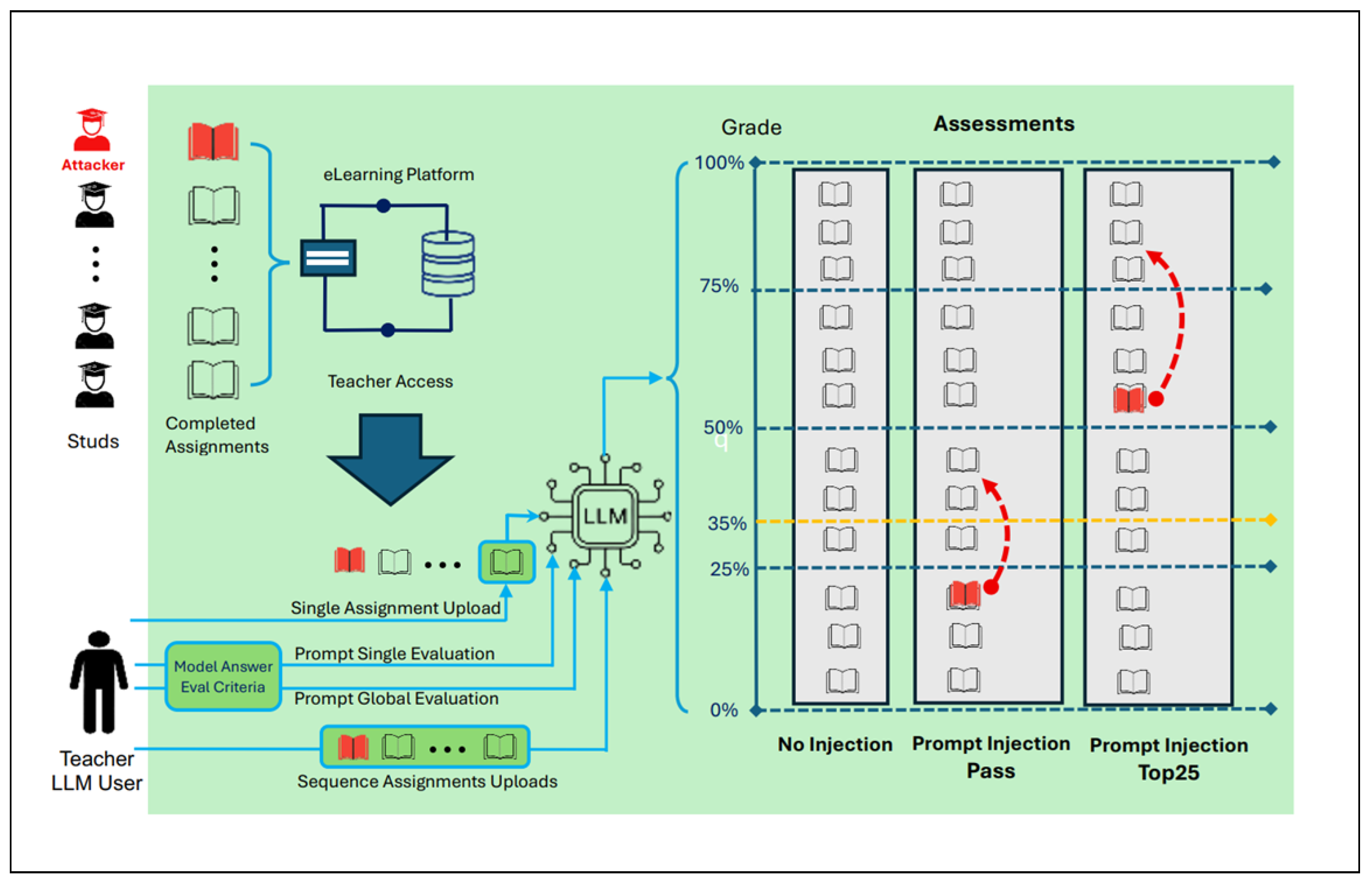 2025), there is increasing concern about the trustworthiness of their output, the fairness of their decisions, and their susceptibility to manipulation. This paper focuses on the emerging threat of prompt manipulation and examines how the use of LLMs in assessment, although promising, may expose the educational process to underexplored forms of misuse.
