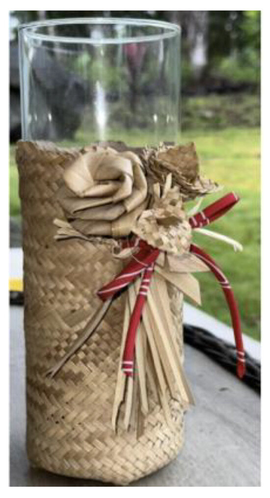 When I was taught to weave, my kumu [teacher] said not to fight the lau [leaf]. Let the lau do what it wants to do and I am merely there to guide the leaf into place. The same goes for our students, I do my very best not to indoctrinate and try to just guide them. Once the weaving project is complete, the interconnectedness of each leaf creates a beautiful artifact and with our students, we always connect them and network with them with their peers, their families, and the community. Ultimately, we want them to network with each other because this creates our beautiful lāhui [nation] and kaiāulu [community]. Our Hawaiian values are built upon community and proactive planning rather than the individual nuclear families and selfish behavior. I also wove three flowers (in order from L to R, loke [rose], anthurium, and putiputi [Māori flower]. These flowers are three different techniques that come with networking with people from outside our community. We can still learn from people that are different from us and that will only make us more beautiful. I also took this photo on my front patio. I have been learning to become more patient every time I work in my front yard which in turn is helping me become more patient with my 6th graders.[Personal Correspondence, 5 March 2024]