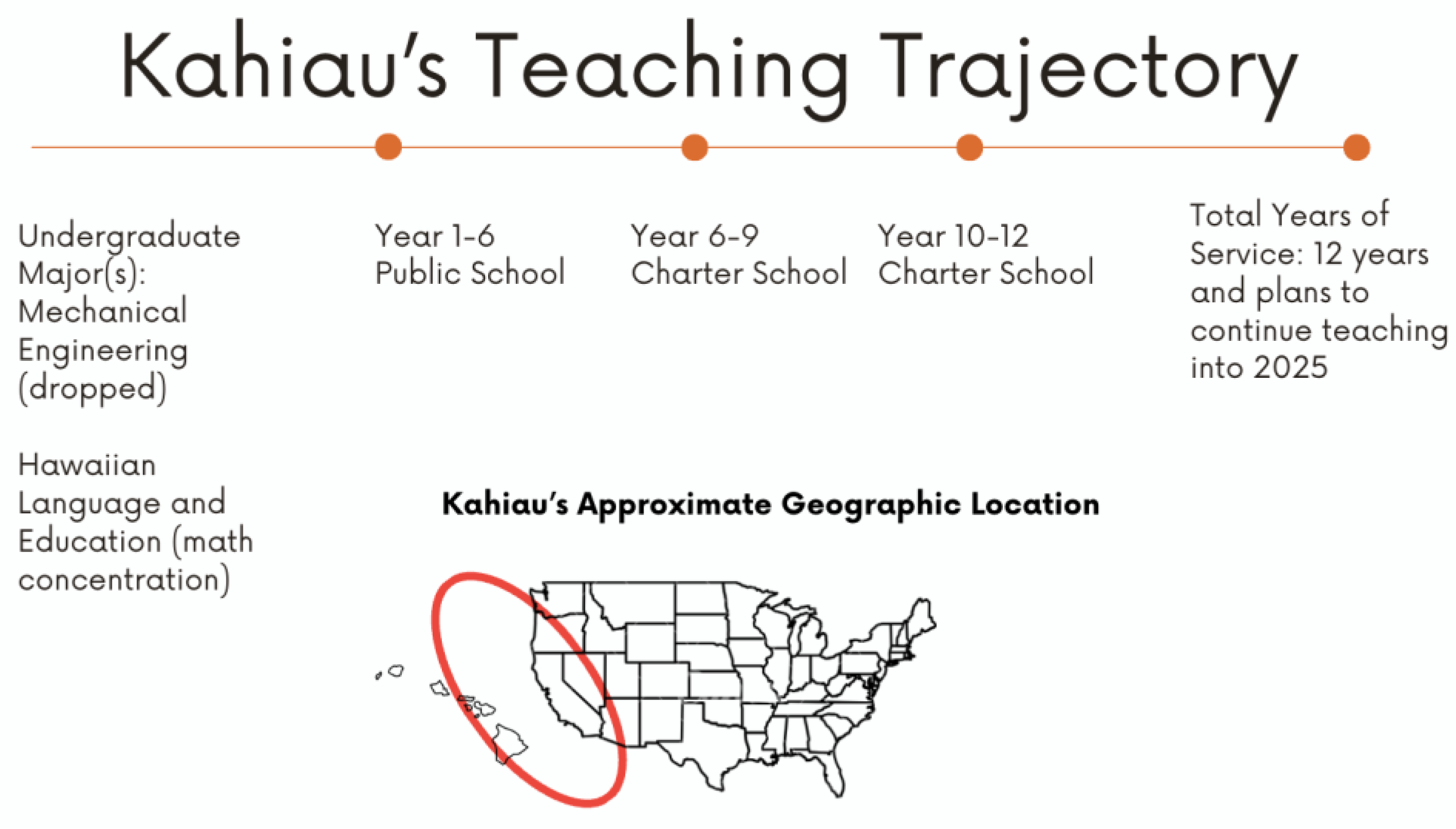 - For Kahiau, reclaiming language and practicing Hawaiian culture are central to his de/colonization praxis. This includes his evolving spiritual practices rooted in Native Hawaiian traditions such as hula, his commitment to ensuring that future kānaka maoli [Indigenous Hawaiian person] generations do not face the same barriers he encountered in pursuing STEM pathways, and his integration of cultural connections between people, language, and mathematics into his daily teaching.