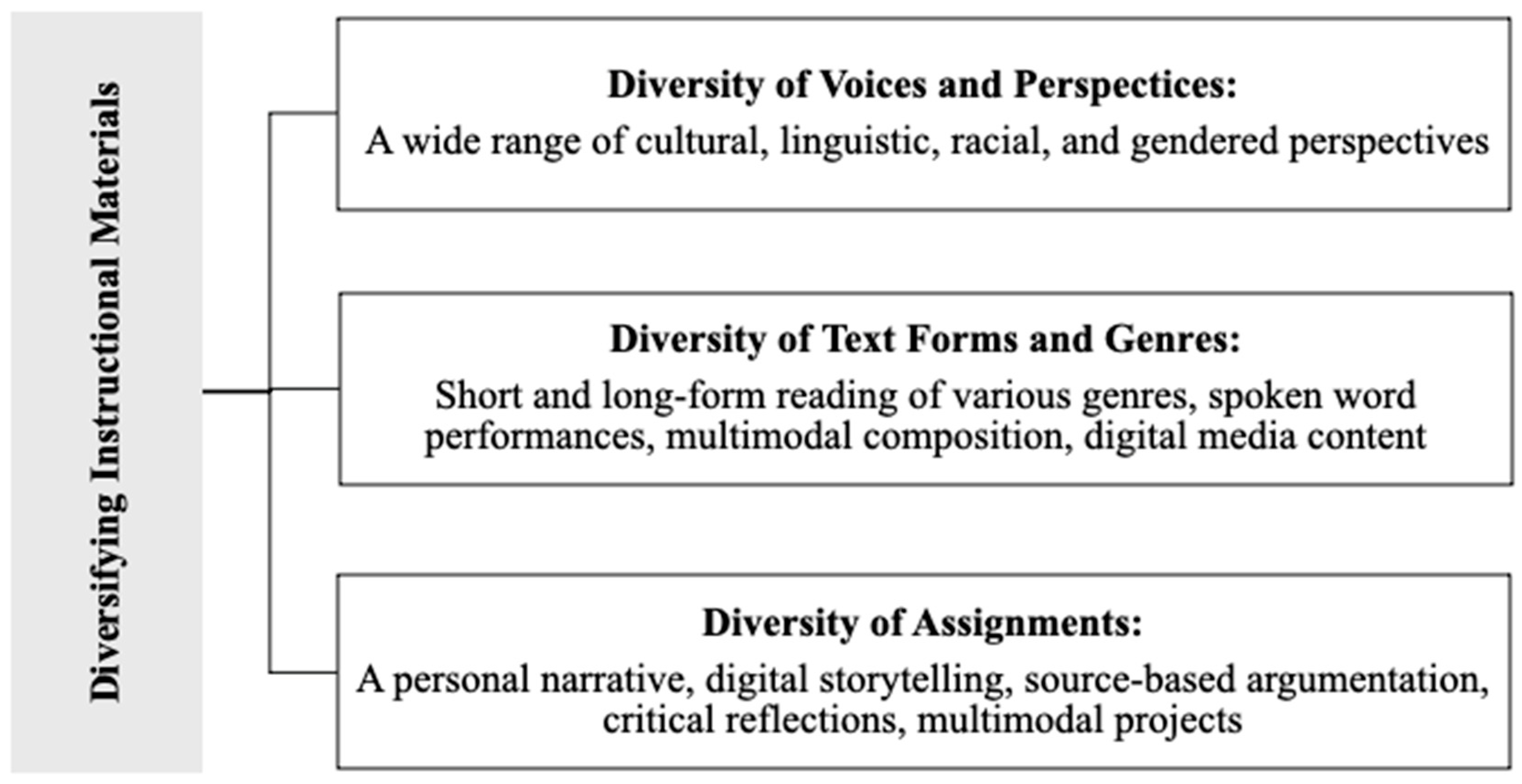 4.1. Diversity of Voices, Texts, and Assignments